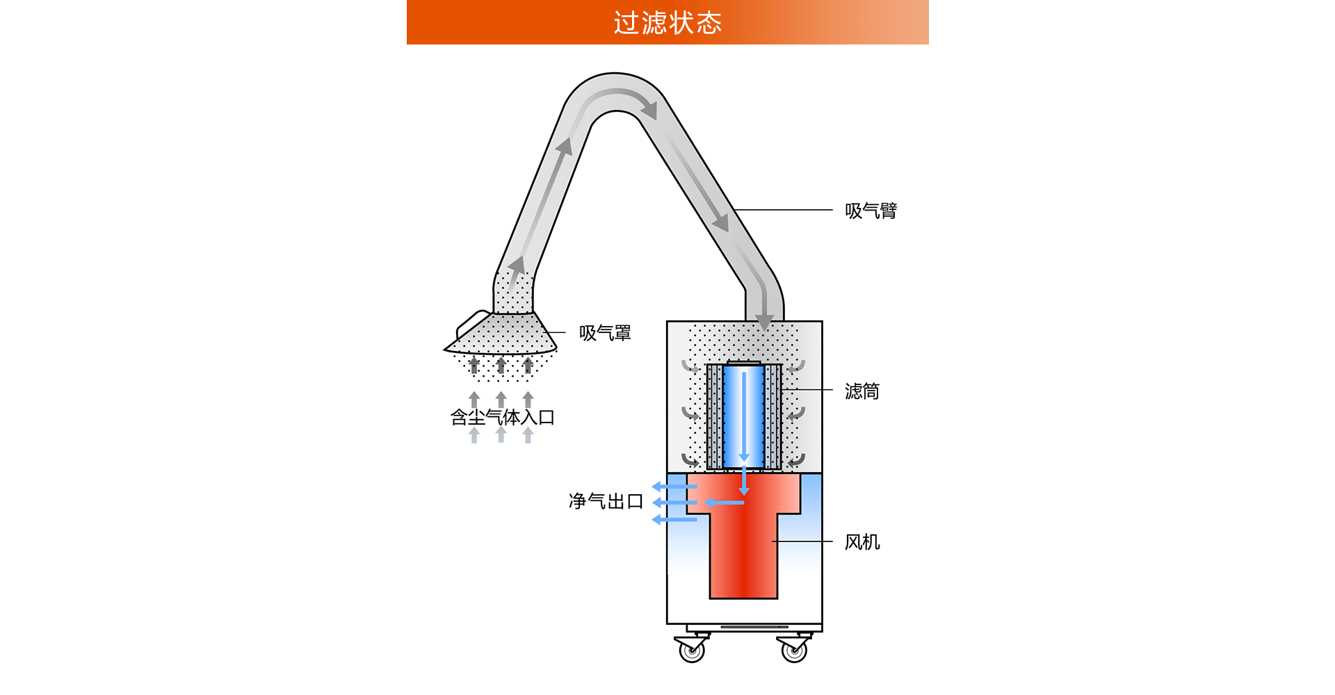 通過反復(fù)小幅度的沖擊振動,將積聚在濾筒外部的粉塵震落至灰斗內(nèi)。